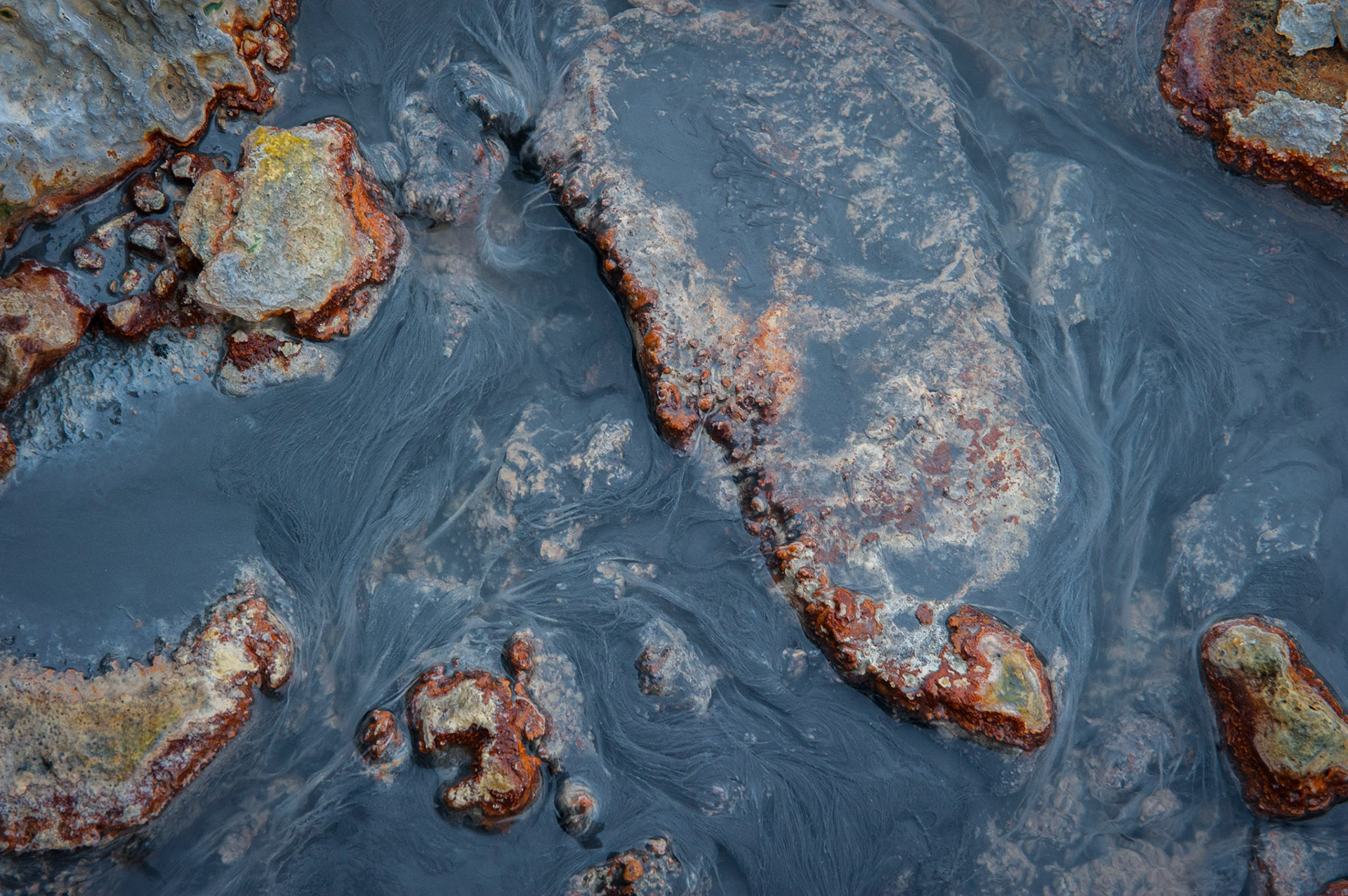 Steam rises out of the ground near a lighthouse in Reykjanesskagi (translated literally as 'smoke headland peninsula').